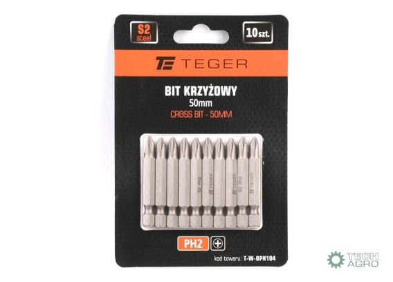 Bit krzyżowy PH 50 mm/PH2 (ZESTAW 10 SZT) / TEGER
