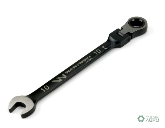 Klucz płasko-oczkowy 10 mm z grzechotką72 zęby i przegubem Waryński
