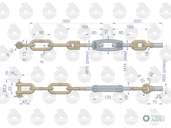 Łańcuch boczny 46450390 46650400 C-360 ORYGINAŁ URSUS