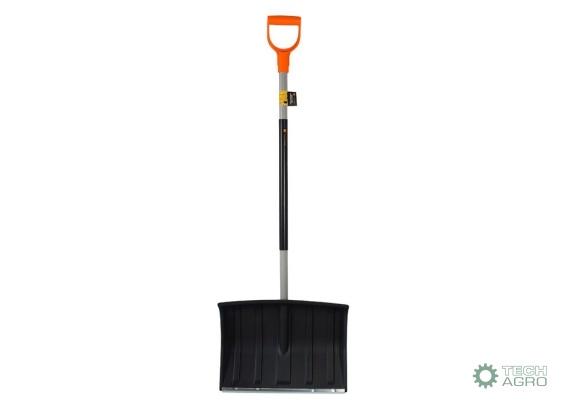 Łopata do śniegu na metalowym trzonku, 480x1200 mm - czarna, Teger