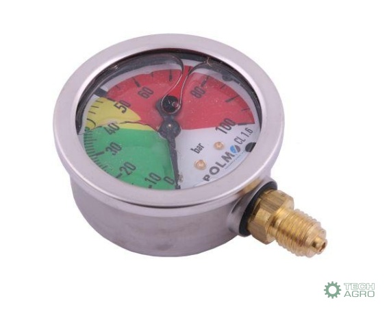 Manometr glicerynowy M63 0-100 bar gwint M12x1,5 dolne przyłącze, obudowa kwasoodporna, Opryskiwacz POLMO