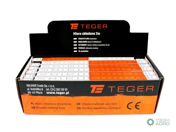 Miara drewniana TEGER długość 2m składana tradycyjna wykonana zgodnie z normami obowiązującymi przy dyrektywie CE (MID) w kartoniku ekspozycyjnym