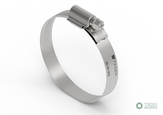 Opaska zaciskowa wzmacniana 30-45 ślimakowa skręcana (obejma W2 - stal nierdzewna) szerkość 12mm TEGER. Opaski zaciskowe ślimakowe - łatwe w montażu: śrubokręt lub kluczyk, trwałe, duża siła zaciskająca. Spakowane w plastikowy zbiorczy blister z etykietą i otworem - służącym do zawieszenia na regał ekspozycyjno-sprzedażowy.