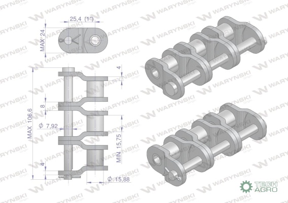 Półogniwo łańcucha przemysłowe P16AH-3 ANSI A 80H (R3 1) Waryński ( sprzedawane po 5 )