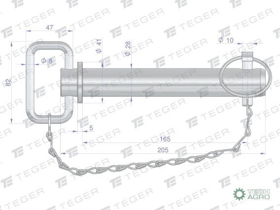 Sworzeń zaczepu z zawleczką i łańcuchem28x165x205 TEGER
