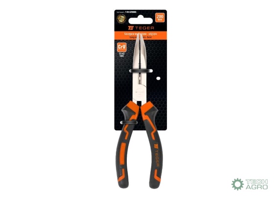 Szczypce wydłużone - odgięte 200 mm / TEGER Przeznaczone do przytrzymywania, kształtowania i cięcia elementów. Ułatwiają pracę w trudno dostępnych miejscach. Wykonane ze stali chromowo-wanadowej, odporne na ścieranie, pękanie i odkształcenia. Ergonomiczna rękojeść powlekana antypoślizgowym tworzywem zapewnia komfort i pewny chwyt podczas pracy.