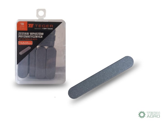 Wpust pryzmatyczny 14x9x50 TEGERWpusty pryzmatyczne TEGER, głównym zadaniem jest przenoszenie momentu obrotowego między wałem a piastą w różnego rodzaju maszynach i mechanizmach.Produkt zapakowany jest w praktyczne, plastikowe pudełko z zamknięciem, które ułatwia przechowywanie i pozwala utrzymać porządek w sklepie, warsztacie lub skrzynce narzędziowej.