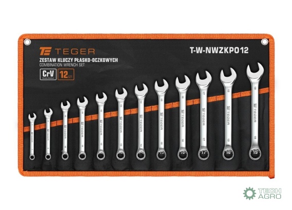 Zestaw kluczy płasko-oczkowych, 7-19 mm, 12 szt, Teger