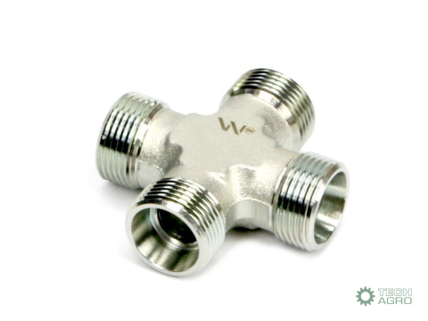 Czwórnik hydrauliczny metryczny BBBB M30x2 22L Waryński. Elementy złączne zostały zaprojektowane i wykonane zgodnie z obowiązującymi normami, które szczegółowo opisują wymagania jakościowe i wymiarowe. Są kompatybilne z elementami złącznymi innych renomowach producentów hydrauliki siłowej.