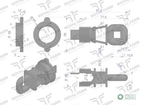 Izolator z nakrętką do drutu i plecionki G174 ROYAL FARM (sprzedawane po 10 szt)