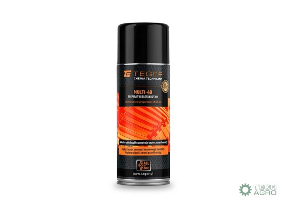 Preparat wielofunkcyjny MULTI-40 400ml / TEGER Wielofunkcyjny preparat czyszczący luzujący smarujący i zabezpieczający. Chroni przed wilgocią solą i innymi czynnikami powodującymi korozję. Preparat wspomaga funkcjonowanie zawiasów zasuw prowadnic i innych mechanicznych elementów metalowych. Luzuje zardzewiałe połączenia śruby nakrętki itp. tworząc przy tym warstwę ochronną. Chroni przed korozją smaruje czyści elementy i urządzenia takie jak: śruby zawiasy narzędzia świece zapłonowe maszyny do szycia zamki broń łańcuchy zaciski oraz wiele innych. Wysoka tolerancja na działanie temperatur (-30°C do 100°C) uniwersalny środek smarujący czyszczący i zabezpieczający wysoce penetrujący skutecznie wypiera wilgoć zabezpiecza przed działaniem wilgoci oraz szkodliwymi czynnikami korozji zachowuje swoją sprężystość i nie kruszeje tworzy trwałą powłokę ochronną. Sposób użycia: Pojemnik przed użyciem wstrząsnąć. Rozpylać z odległości 20-30 cm. Utylizacja: Zawartość/pojemnik TEGER >Chemia >Chemia techniczna >Chemia techniczna - spraye