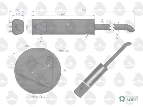 Tłumik boczny krótki 1300mm C-385 ORYGINAŁ URSUS