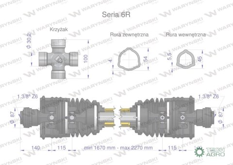 • Wał przegubowo-teleskopowy 1670-2270mm 830Nm szerokokątny z dwóch stron CE 2020 seria 6R Waryński