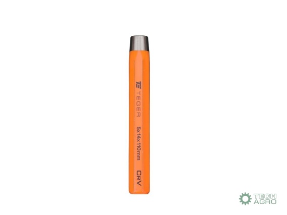 Zakuwacz do nitów kulistych 5x14x110mm, TEGER przeznaczonych do precyzyjnego osadzania i formowania nitów kulistych. Wykonany z wysokogatunkowej stali chromowo-wanadowej, charakteryzuje się wyjątkową trwałością, odpornością na odkształcenia i dokładnym dopasowaniem do średnicy nita. Dzięki ergonomicznemu kształtowi oraz twardości powierzchni roboczej, zakuwacz TEGER zapewnia czyste, estetyczne i powtarzalne zakucia kuliste bez ryzyka uszkodzenia materiału. Indeks zestawu: T-W-ZPWP002 TEGER