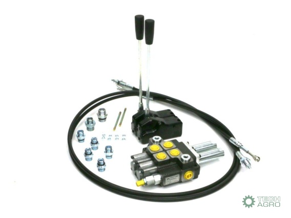 Zestaw: Rozdzielacz 2-sek. + Dźwignie do sterowania + Szpilki łączeniowe + Elementy złączne + Linki na widełki 2500mm Waryński