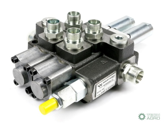 Zestaw: Zestaw: Rozdzielacz 2-sekcyjny na linki + Elementy złączne WaryńskiW skład zestawu wchodzą:1. W-ROZ40L/2L (Rozdzielacz hydrauliczny dwusekcyjny (2) 40L sterowany joystickiem Waryński) x 1szt;2. W-5011061206 (Przyłączka hydrauliczna BB (XGE) M18x1.5 12L x 3/8" BSP ED Waryński) x 4szt;3. W-5011061506 (Przyłączka hydrauliczna BB (XGE) M22x1.5 15L x 3/8" BSP ED Waryński) x 1szt;4. W-5011061508 (Przyłączka hydrauliczna BB (XGE) M22x1.5 15L x 1/2" BSP ED Waryński) x 1szt