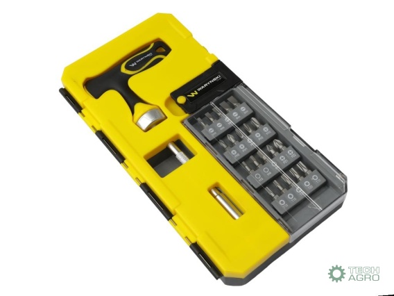 Zestaw końcówek wkrętakowych, bitów, z uchwytem grzechotkowym typu T, Waryński
